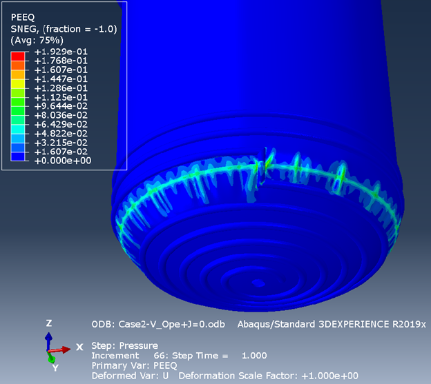 3. End Results: The unstiffened head did not satisfy code margins in plastic-collapse or buckling checks, whereas coil-stiffened cases converged and met the required design margins. Incorporating the half-pipe coil significantly increased head stiffness and pressure capacity, with the knuckle remaining the governing location under internal pressure. Thus, when evaluated by VIII-2 Part 5 methods under the governing combined-loading case, the head and shell were acceptable for the rating envelope.
